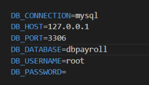 after create the database.you have to open your project into Visual Studio Code Editor. after that you have to configure the database details into Laravel project .env file. i attach the database details below.