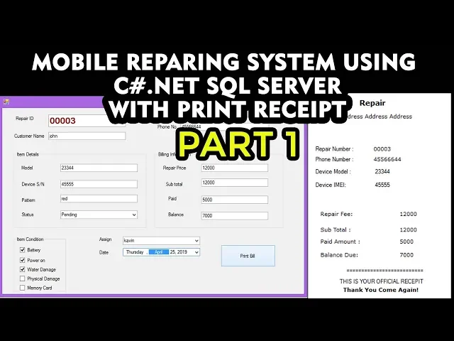 #c#.net,#c# projects Mobile Repair management using C#.net Part 1 Source codes : www.tutussfunny.com Buy All the C# Projects source code from here : https://bit.ly/3RiCeiB Project Source Codes Download the Apps on Google Play Store https://bit.ly/3QeAQhB
